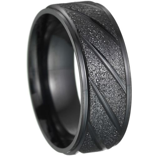 COI Black Tungsten Carbide Diagonal Grooves Step Edges Ring. Comfort fit with inside round shank. A 100% tailor-made ring for you. Classic with delicated details, unsurpassed quality plus incredible value! Perfect as a wedding band, engagement ring or just for everyday wear due to its extreme comfort!