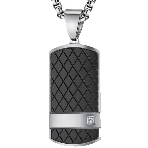 COI Titanium Black/Gold Tone Silver Tag Pendant With Cubic Zirconia. Titanium is an extraordinarily hard metal alloy which is amazingly scratch-resistant. In fact, it is so hard that only a few naturally occurring minerals can even scratch it. That's means that our exotic titanium pendant will hold their polished-finish vastly longer than any other pendant made. To give you an idea, these solid titanium pendants are over 5 times harder than the toughness stainless steel.