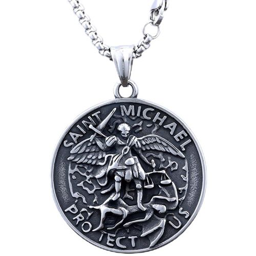 COI Titanium Black Silver St Michael Protect Us Pendant. Necklace sold separately.