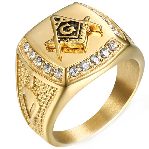 COI Titanium Gold Tone/Black Masonic Freemason Ring With Cubic Zirconia. Comfort fit with inside round shank. A 100% tailor-made ring for you. Classic with delicated details, unsurpassed quality plus incredible value! Perfect as a wedding band, engagement ring or just for everyday wear due to its extreme comfort!