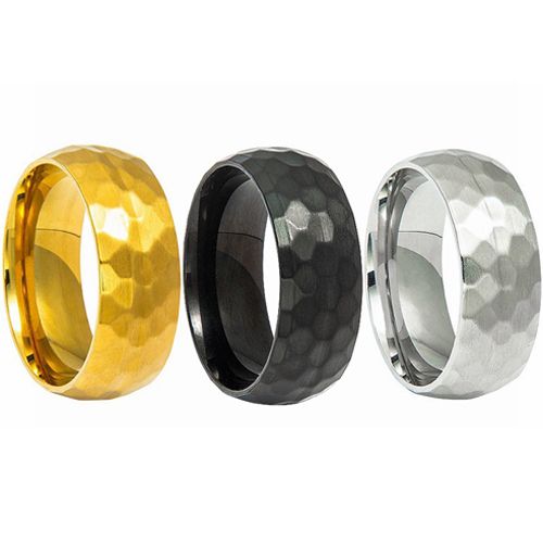 COI Ttanium Black/Gold Tone/Silver Hammered Dome Court Ring. Comfort fit with inside round shank. A 100% tailor-made ring for you. Classic with delicated details, unsurpassed quality plus incredible value! Perfect as a wedding band, engagement ring or just for everyday wear due to its extreme comfort!