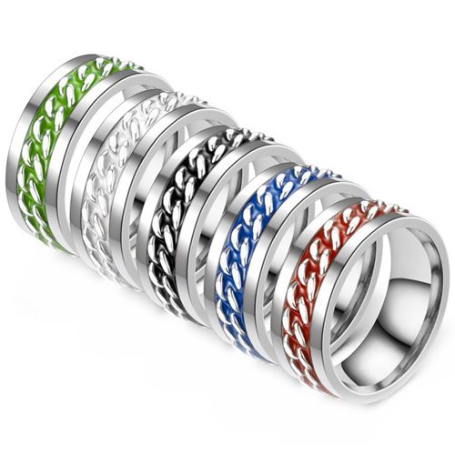 COI Titanium Silver Black/Whie/Blue/Green/Red Keychain Link Ring. Comfort fit with inside round shank. A 100% tailor-made ring for you. Classic with delicated details, unsurpassed quality plus incredible value! Perfect as a wedding band, engagement ring or just for everyday wear due to its extreme comfort!