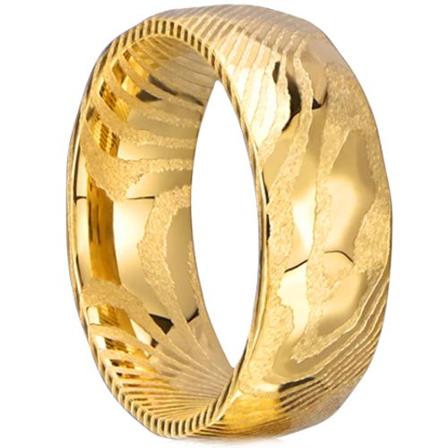 COI Tungsten Carbide Gold Tone/Black Damascus Dome Court Ring. Comfort fit with inside round shank. A 100% tailor-made ring for you. Classic with delicated details, unsurpassed quality plus incredible value! Perfect as a wedding band, engagement ring or just for everyday wear due to its extreme comfort!