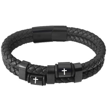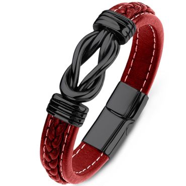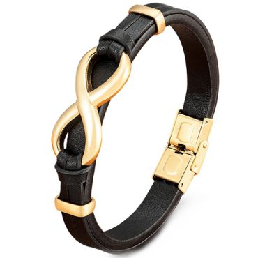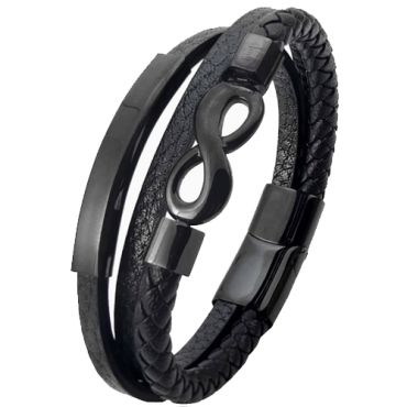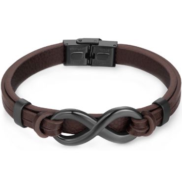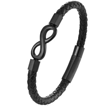 ***COI Black Titanium Infinity Genuine Leather Bracelet With Steel Clasp(Length: 8.27 inches)-00122ASpecial Price $99.99 Regular Price $199.99