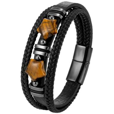 ***COI Black Titanium Amethyst Genuine Leather Bracelet With Steel Clasp(Length: 9.06 inches)-01161ASpecial Price $99.99 Regular Price $199.99