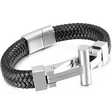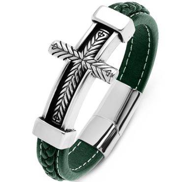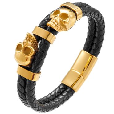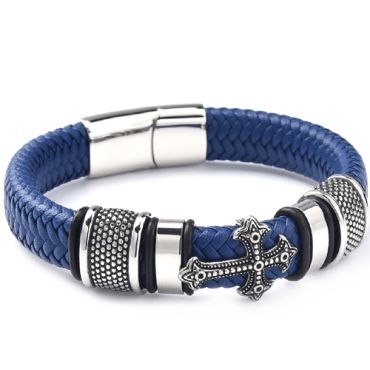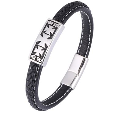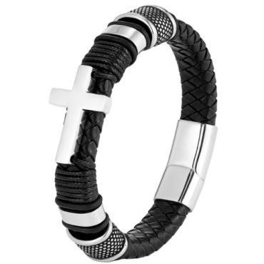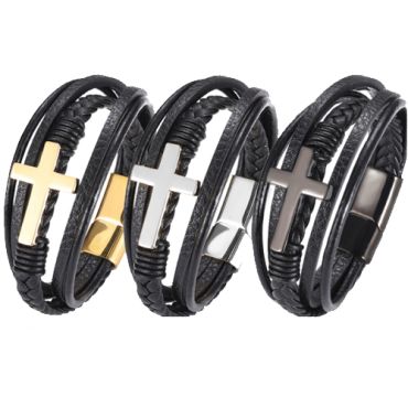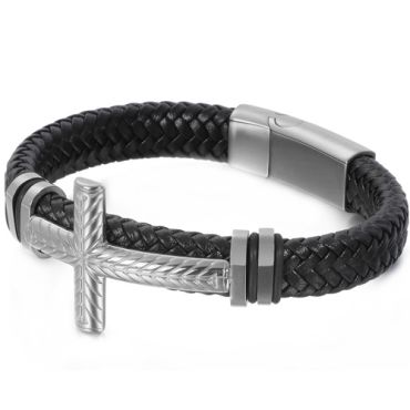 ***COI Gold Tone Titanium Cross Genuine Leather Bracelet With Steel Clasp(Length: 8.07 inches)-00002Special Price $99.99 Regular Price $299.99