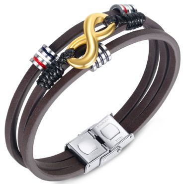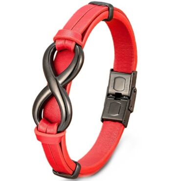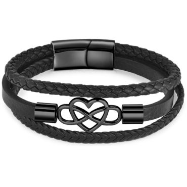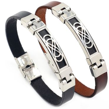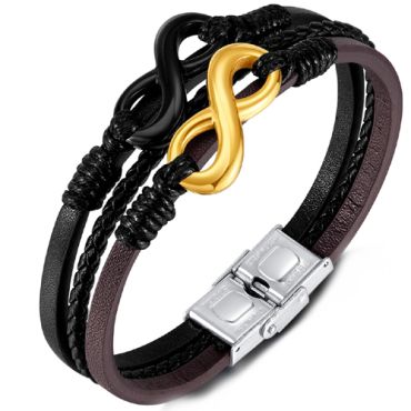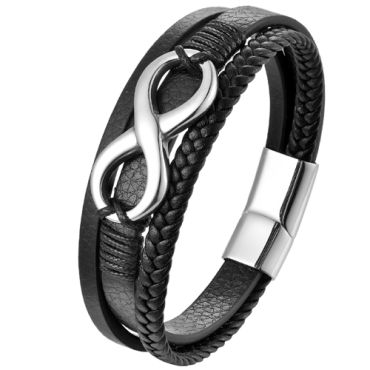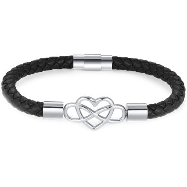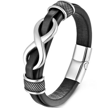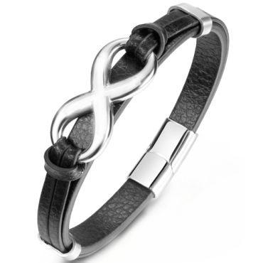 ***COI Black Titanium Infinity Genuine Leather Bracelet With Steel Clasp(Length: 8.27 inches)-00122ASpecial Price $99.99 Regular Price $199.99