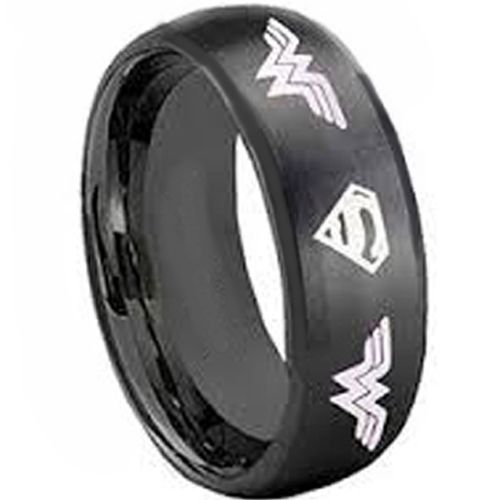 **COI Black Titanium Super Man Wonder Women Ring - JT4050