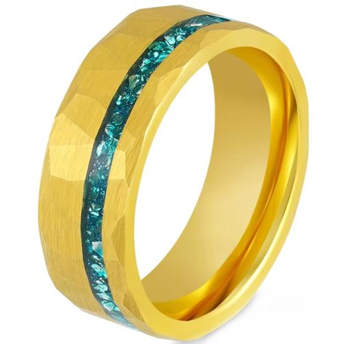 COI Gold Tone Tungsten Carbide Hammered Ring With Blue Topaz. Comfort fit with inside round shank. A 100% tailor-made ring for you. Classic with delicated details, unsurpassed quality plus incredible value! Perfect as a wedding band, engagement ring or just for everyday wear due to its extreme comfort!