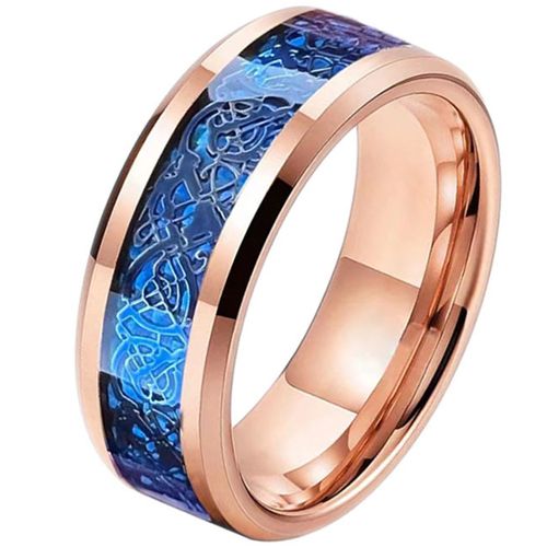 COI Rose Titanium Blue Dragon Beveled Edges Ring With Carbon Fiber. Comfort fit with inside round shank.  A 100% tailor-made ring for you.  Classic with delicated details, unsurpassed quality plus incredible value!   Perfect as a wedding band, engagement ring or just for everyday wear due to its extreme comfort!