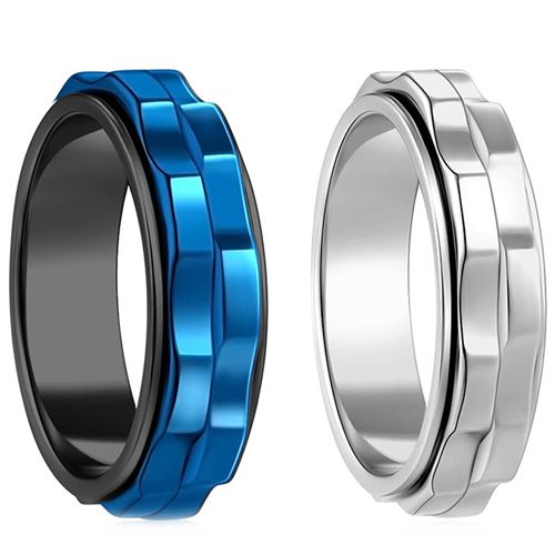 **COI Titanium Black Blue/Silver Rotating Step Edges Ring-8855AA