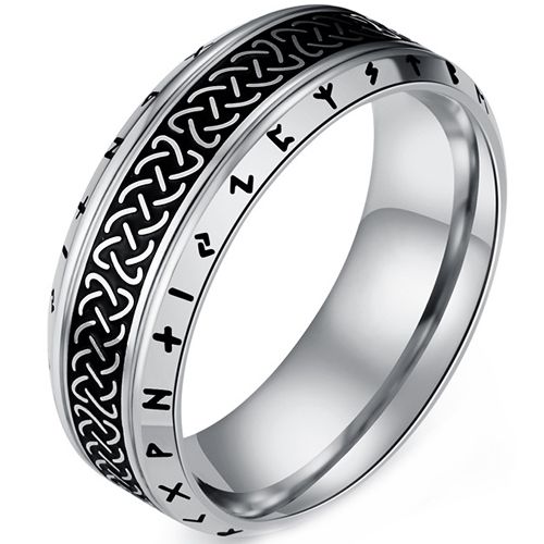 COI Titanium Black/Gold Tone/Silver Celtic Beveled Edges Ring With Runes. Comfort fit with inside round shank. A 100% tailor-made ring for you. Classic with delicated details, unsurpassed quality plus incredible value! Perfect as a wedding band, engagement ring or just for everyday wear due to its extreme comfort!