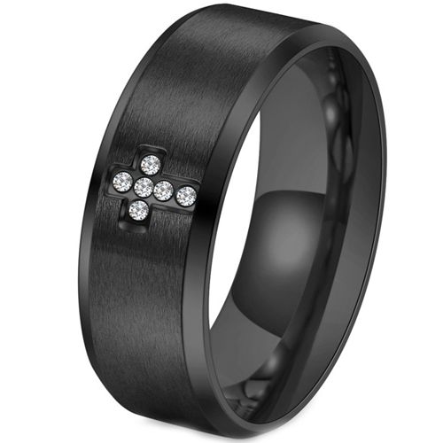 COI Titanium Black/Gold Tone/Silver Cross Beveled Edges Ring With Cubic Zirconia. Comfort fit with inside round shank. A 100% tailor-made ring for you. Classic with delicated details, unsurpassed quality plus incredible value! Perfect as a wedding band, engagement ring or just for everyday wear due to its extreme comfort!