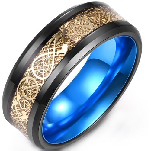 COI Titanium Black Blue/Purple/Red/Green Gold Tone Dragon Beveled Edges Ring. Comfort fit with inside round shank. A 100% tailor-made ring for you. Classic with delicated details, unsurpassed quality plus incredible value! Perfect as a wedding band, engagement ring or just for everyday wear due to its extreme comfort!