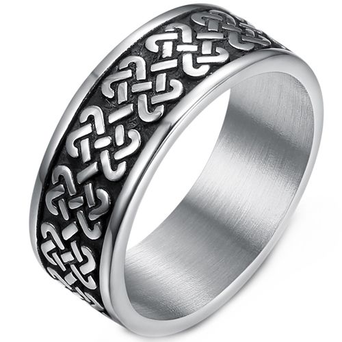 ***COI Titanium Black Silver Celtic Knots Ring-00424A