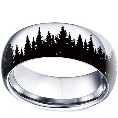 **COI Titanium Black/Silver Forest & Tree Dome Court Ring-9947