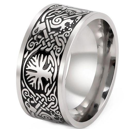 ***COI Tungsten Carbide Black Silver Mountains Dome Court Ring-01051A