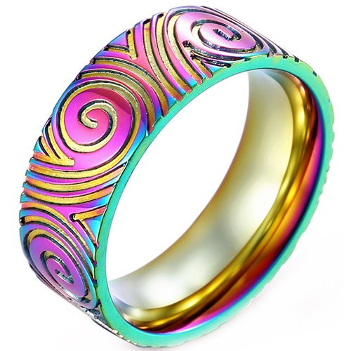 COI Titanium Black/Silver/Rainbow Color Waves Grooves Ring. Comfort fit with inside round shank. A 100% tailor-made ring for you. Classic with delicated details, unsurpassed quality plus incredible value! Perfect as a wedding band, engagement ring or just for everyday wear due to its extreme comfort!