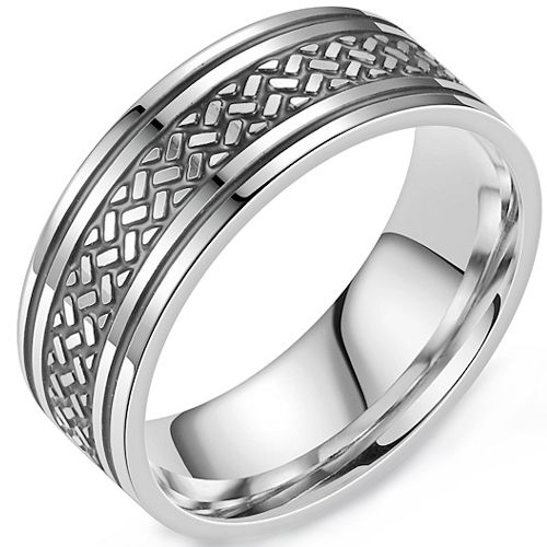 While not wearing your ring, store it separately in a small pouch or bag so it will not scratch other, softer metal jewelry items. To clean your ring, mix a few drops of mild detergent (household soap works well) with warm water, dampen a soft cloth with the mixture and rub the surface of the ring to remove dirt and oil. You can then use a cotton swab to clean any hard to reach grooves or around diamonds. Rinse with warm water and dry with a soft cloth. As with all jewelry, avoid contact with any harsh chemicals including household products such as ammonia, bleach and chlorine. If your ring does come in contact with any of the above chemicals, clean the ring right away using the above cleaning instructions.