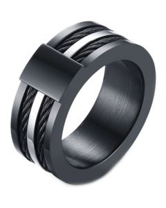 **COI Titanium Black Silver Trinity Knots Step Edges Ring-7817
