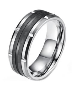 COI Titanium Black Silver Trinity Knots Step Edges Ring. Comfort fit with inside round shank. A 100% tailor-made ring for you. Classic with delicated details, unsurpassed quality plus incredible value! Perfect as a wedding band, engagement ring or just for everyday wear due to its extreme comfort!