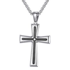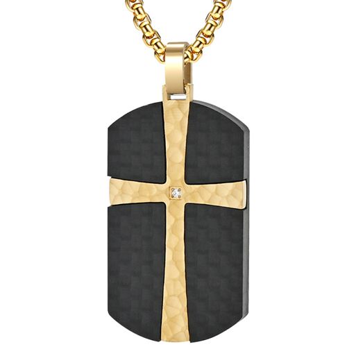 COI Titanium Gold Tone/Silver Cubic Zirconia Cross Dog Tag Pendant With Carbon Fiber. Necklace sold separately.