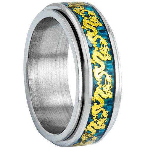 COI Titanium Gold Tone/Silver Dragon Step Edges Ring With Carbon Fiber.  Comfort fit with inside round shank.  A 100% tailor-made ring for you.  Classic with delicated details, unsurpassed quality plus incredible value!   Perfect as a wedding band, engagement ring or just for everyday wear due to its extreme comfort!