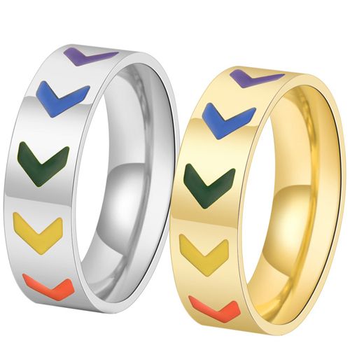 COI Titanium Gold Tone/Silver Rainbow Color Ring With Arrows. Comfort fit with inside round shank. A 100% tailor-made ring for you. Classic with delicated details, unsurpassed quality plus incredible value! Perfect as a wedding band, engagement ring or just for everyday wear due to its extreme comfort!