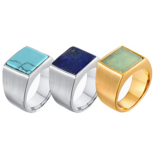 COI Titanium Gold Tone/Silver Ring With Turquoise/Created Jade/Lapis Lazuli. Comfort fit with inside round shank. A 100% tailor-made ring for you. Classic with delicated details, unsurpassed quality plus incredible value! Perfect as a wedding band, engagement ring or just for everyday wear due to its extreme comfort!