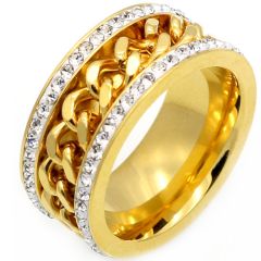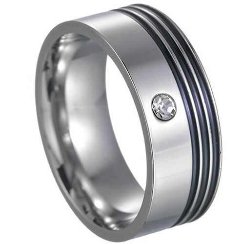***COI Titanium Triple Grooves Ring With Cubic Zirconia-00052A