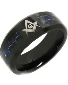 **COI Tungsten Carbide Love Beveled Edges Ring With Black Carbon Fiber-8091AA