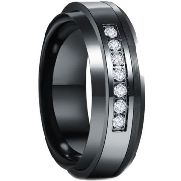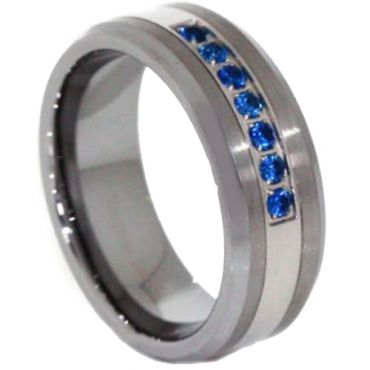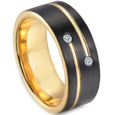 ***COI Tungsten Carbide Black Gold Tone Double Grooves Ring With Gold Foil & Created Red Ruby-00511ASpecial Price $119.99 Regular Price $199.99