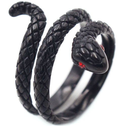 COI Black Titanium Snake Ring With Black Onyx/Created Red Ruby. Comfort fit with inside round shank. A 100% tailor-made ring for you. Classic with delicated details, unsurpassed quality plus incredible value! Perfect as a wedding band, engagement ring or just for everyday wear due to its extreme comfort!