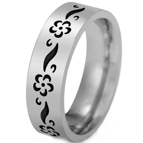COI Titanium Black Gold Tone/Silver Floral Pipe Cut Flat Ringa. Comfort fit with inside round shank. A 100% tailor-made ring for you. Classic with delicated details, unsurpassed quality plus incredible value! Perfect as a wedding band, engagement ring or just for everyday wear due to its extreme comfort!