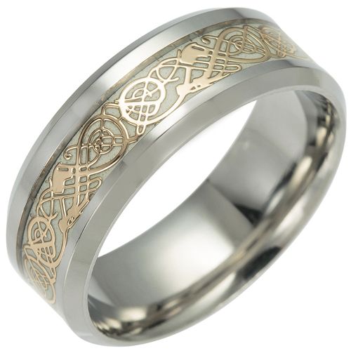 COI Titanium Black/Gold Tone/Silver Dragon Luminous Beveled Edges Ring.  Comfort fit with inside round shank.  A 100% tailor-made ring for you.  Classic with delicated details, unsurpassed quality plus incredible value!   Perfect as a wedding band, engagement ring or just for everyday wear due to its extreme comfort!