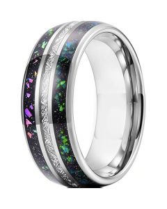 COI Black Tungsten Carbide Crushed Opal Dome Court Ring. Comfort fit with inside round shank.  100% tailor-made ring for you.  Classic with delicated details, unsurpassed quality plus incredible value!   Perfect for everyday wear due to its extreme comfort!